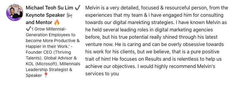 Accredited trainer by Human Resource Development Corporation (HRD Corp) to deliver claimable, high-impact, results-driven digital marketing training programs.